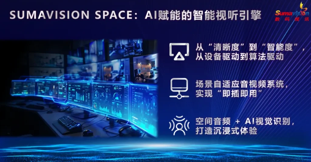 基于数码视讯在超高清视频与AI技术上的积累,公司推出了一款全新的智能产品——SUMAVISION SPACE。产品融合了“指挥”与“决策”两大核心能力,通过AI与数据驱动,实现了跨网络、跨系统、多层级的智能协同。SUMAVISION SPACE的目标,不仅仅是让画面“更清晰”,更重要的是让系统“更智能”。通过AI的深度赋能,公司正在推动视听系统从“清晰度”向“智能度”的进化,让系统能够理解内容、感知环境、自动优化画面与音效,实现从视觉呈现到智能感知的全面升级。同时,公司也致力于推动从“设备驱动” 向 “算法驱动” 的转变。系统能够根据不同的场景进行自动学习与自我配置,实现真正意义上的自优化运行。依托自研的场景、自适应音视频系统,SUMAVISION SPACE实现了“即插即用”的智能部署。结合AI空间音频处理与视觉识别技术,系统能够精准识别空间结构与用户行为,为观众带来更加沉浸、自然、个性化的视听体验。