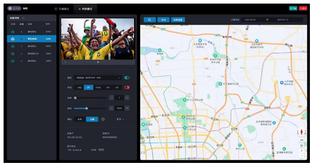 云化管理系统使用方便、功能强大,支持背包的自动上线注册以及参数一键配置,可以对监测数据进行自定义组合,并且相关码率、5G信号强度等均以图形方式直观展示。系统实时采集背包设备GPS位置信息,在管理界面可以随时掌握不同背包的位置、移动轨迹等信息。