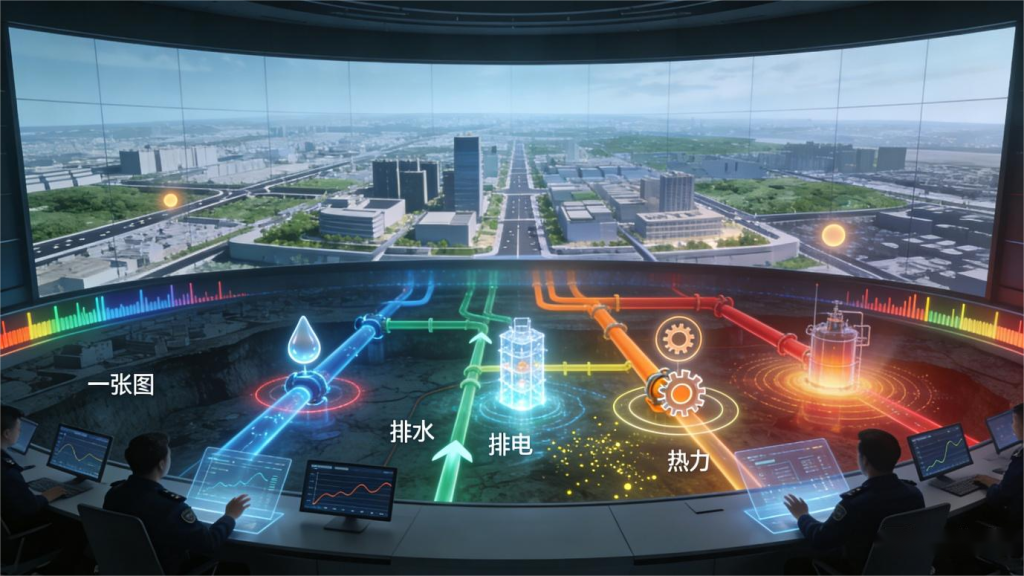 可整合城市供水、排水、供电、燃气、热力等市政基础设施的实时监测数据,结合地下管网“一张图”体系与城市信息模型(CIM)三维数据,在指挥中心大屏实现市政设施运行状态的可视化呈现。