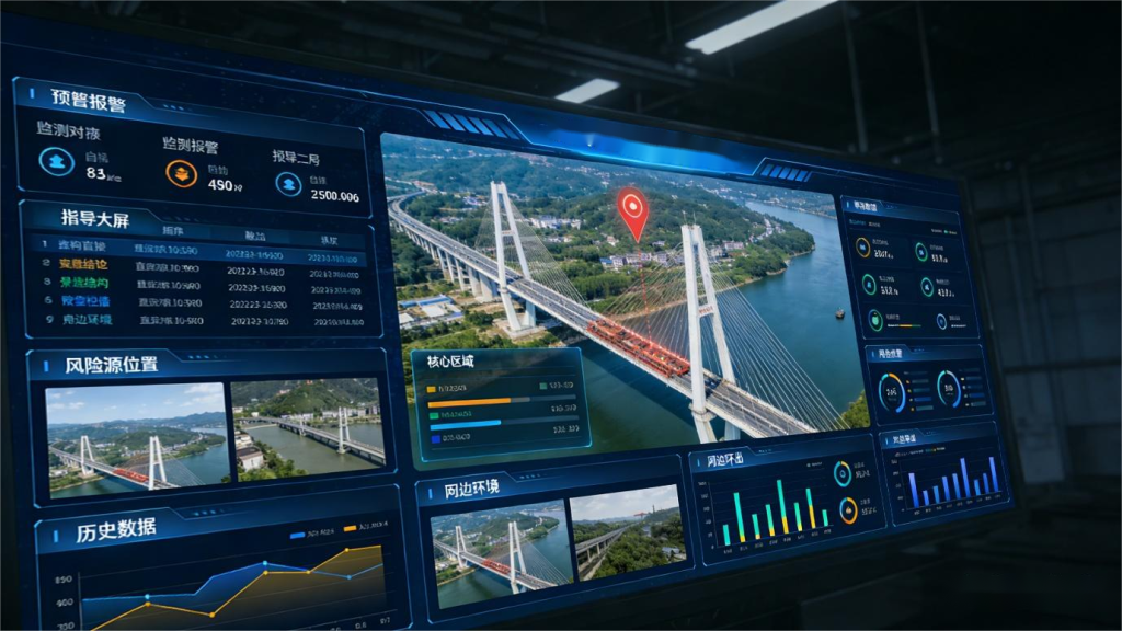 数码视讯慧瞳分析平台,可直接对接各个监测报警业务系统,当平台监测到异常信号(如管道泄漏、桥梁结构异常、火情隐患)时,可自动触发预警机制,将预警信息、风险源位置、周边环境视频等相关信息快速推送至指挥大屏核心区域,并联动弹出历史数据对比图表。