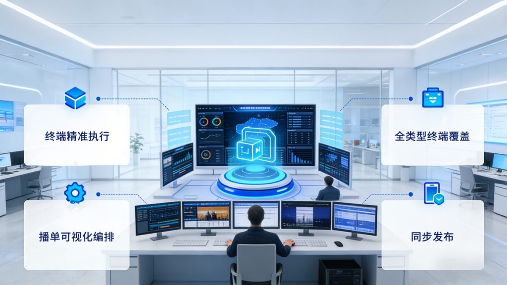 AI信发播控系统是一套 面向多终端、多场景的企业级内容播控系统,通过 AI 与自动化能力,解决“内容多、终端多、管理难、安全要求高”的核心问题。