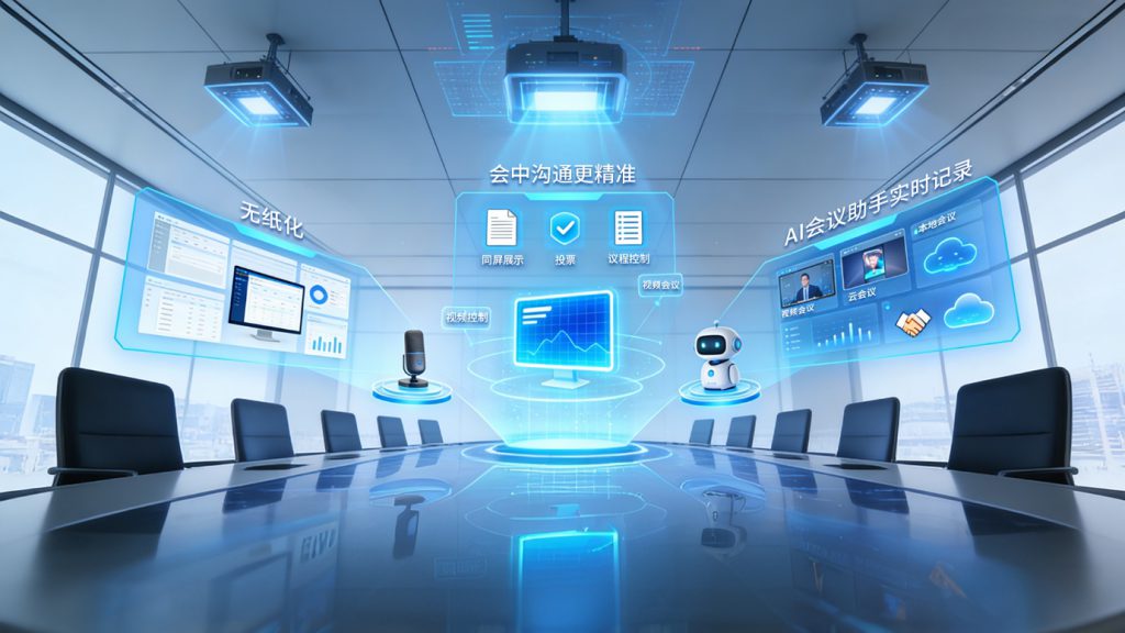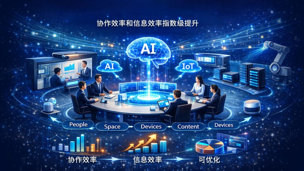 AI融合决策系统是以会议为载体,以 AI 为引擎,以loT为抓手,面向会议协作与决策,打通人、空间、设备、内容与数据,实现真正的智能化、数字化会议。让会议从“事务性活动”升级为 可沉淀、可分析、可优化的决策过程。